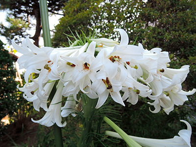 秋風が待ち遠しい皆様に「一服の清涼剤」になればと我が家の庭に咲いた“ササユリ”の写真を送らせていただきます。例年3~5個程度しか咲かないのに、今年は暑さの影響か36個も
