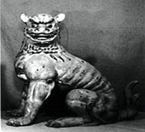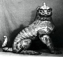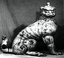 芦之湯の獅子狛犬は、台座などから昭和九年以前の制作という以外は不明だ。手向山スタイルの数少ない珍しい狛犬が、なぜ選ばれて箱根に建立されたのか。興味は尽きない。 |