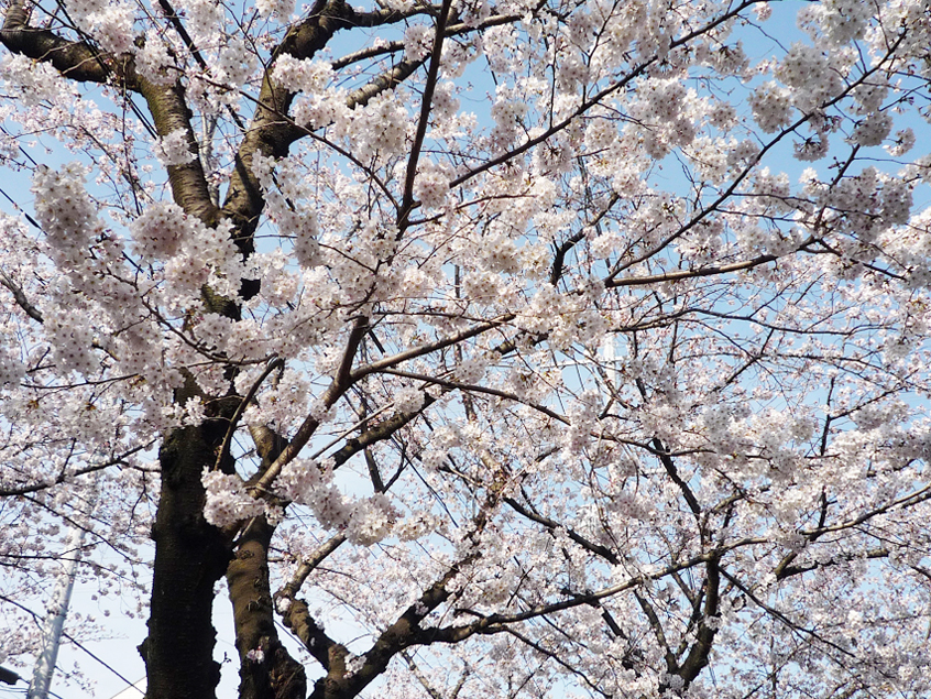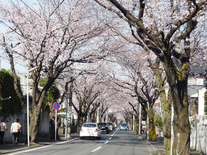 私が今の地(横浜市青葉区あざみ野)に越してきたのは36年前ですが、家から1ブロック(100mほど)行ったところに「桜通り」があり、当時は桜の木も若かったのですが今は立派な大木となり、約800ⅿほどの桜並木は見事な通りになりました。花びらが舞い散る見頃時には花見客で車道も歩道も人が溢れんばかりになります。