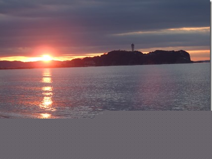 暗雲が立ち込めていましたが、太陽は雲の隙間に顔を出し、静かな海面を染めながら私たちにきらびやかな光を伝えてくれました。それにしてもこの暗雲、今年の世相の暗転を予告するものでなければ良いのですが。