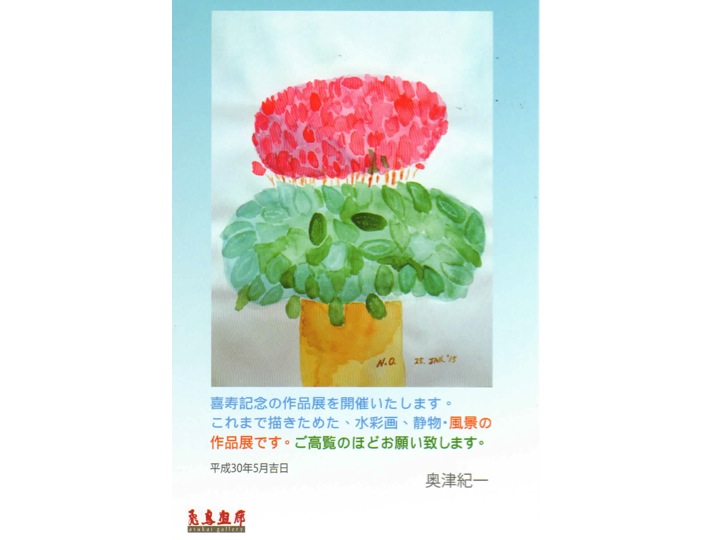 11期3年3組奥津紀一さん(奥津医院院長)が下記日程で水彩画展を開催します。 ご来場の上、ご鑑賞いただきたくご案内いたします。 会期:7月11日(水)~16日(月) 10時~18時 会場:小田原銀座通り 「飛鳥画廊」(☎24-2411) 作品:水彩画、静物、風景 (尚、奥津さんは11日、14日、15日、16日会場におられるそうです。) 発信人 11期3年3組 遠藤、辻