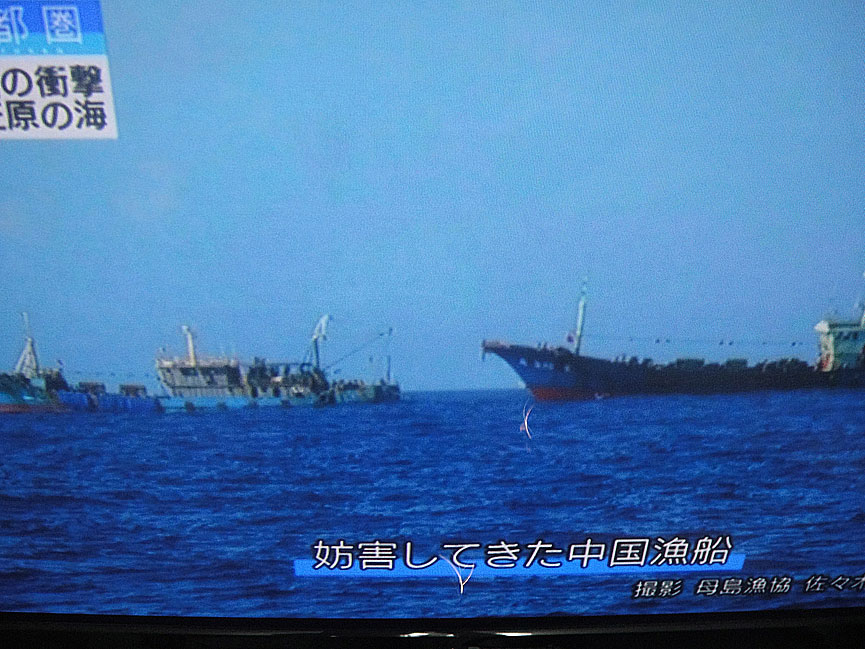 小笠原の日本領海を跋扈する大量の中国漁船。サンゴを根こそぎかっさらうばかりでなく、サカナの棲家を壊しています。平賀さんの嘆きは、単に漁業問題だけでなく、広く環境問題、安全保障問題にも通じる話です。テレビに登場した平賀さんを拝顔しながら、小笠原での中国漁船によるサンゴ密漁問題が、国府津にもつながっているんだ・・・と、言うことを強く訴えたい。