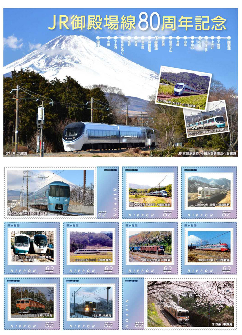 JR御殿場線がことし開業80周年を迎えたことを記念して、12月15日から記念のオリジナルフレーム切手が沿線自治体の郵便局で発売されます。そして、神奈川県松田町は12月20日~21日に町役場で、切手のモデルになった列車をはじめ駅舎など御殿場線にまつわる約40点の写真展を開きます。御殿場線は、私の住む小田原市国府津の「国府津駅」 と静岡県沼津市の「沼津駅」間を走っています。