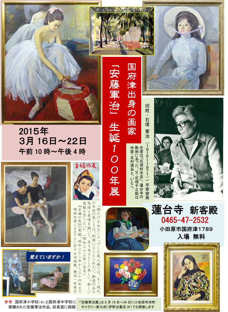 国府津小・中学校に赴任してきた教師や職員は、校長室にある作品を一度は目にするはずです。しかし、「安藤軍治」の名前までは届いていません。作品の写真撮影をお願いするなどの関係で、私は両校長に機会あるごとに軍治情報を送ることにしています。先生方の理解が、また、児童生徒への関心、理解へと通じるからです。一人でも多くの学校関係者が会場に足を運んでいただければ----」と思っております。