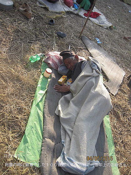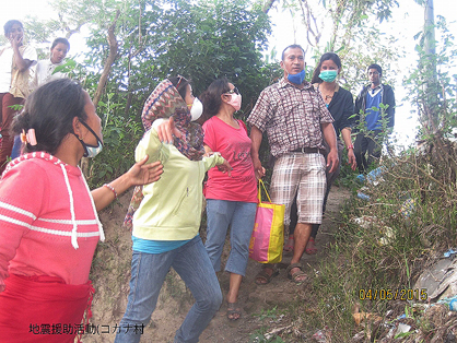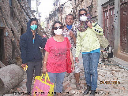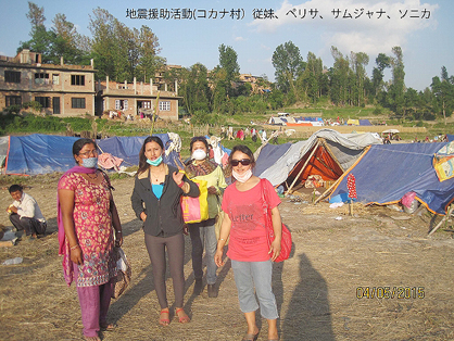 ところで、今回の地震でネパール国土の約半分が被害を受けているので自分たちが無事で生きているのは自分よりもっと被害を受けている人々を助け合いするためだと思い、4月30日より自分たちで出来る家族的な援助活動をやって来ています。25日から29日まで家の近くのほろ場で家族皆で避難していましたがその時も子供、病院、年配の人々を中心に自分で出来るだけのボランティアをしながら頑張りました。