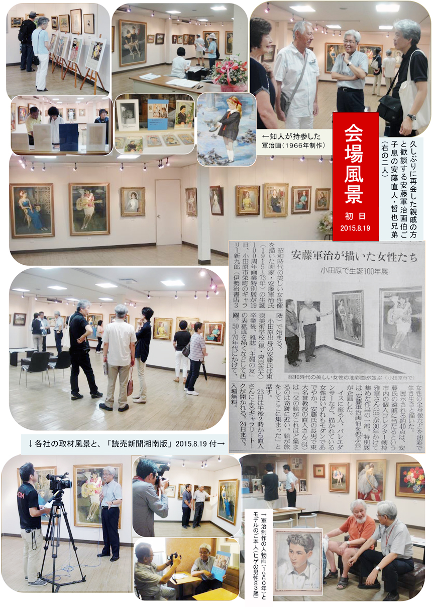昭和時代の女性像を明るく作品に遺した小田原市国府津出身の画家「安藤軍治」(旧姓「石塚」1915年-1973年)。2015年8月19日から小田原市栄町の「ギャラリー新九郎」(伊勢治書店本店3階)で開かれていた「軍治生誕100年」を記念する画業特別展が24日、無事お開きになりました。来場者は延べ450人を越えました。「延べ」と言うのは上記のようなリピーターが多かったためです。