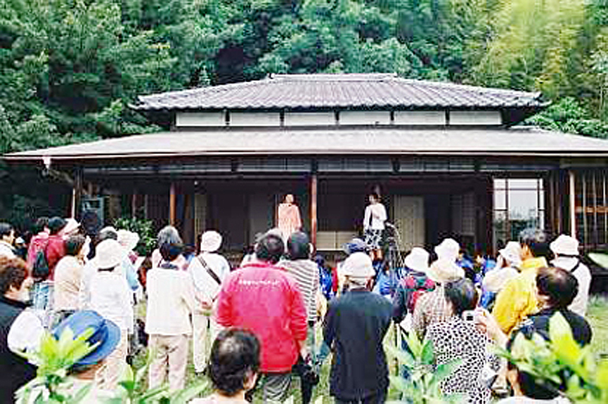 この名曲と国府津を結ぶ逸話を背景に、国府津商工振興会は創立50周年記念事業として平成16年5月に「みかんの花咲く丘・ぶらっとハイキング」と名付けたみかんの花と香りを楽しむイベントを行いました。添付の写真にもありますが、川田正子さんを呼んで国府津に残る諸戸別荘で歌ってもらいました。会員のパン店は「みかんパン」(今もあります)を作り、農家の協力を得て香りの漂う「みかんの花びら」を参加者にプレゼントしました。