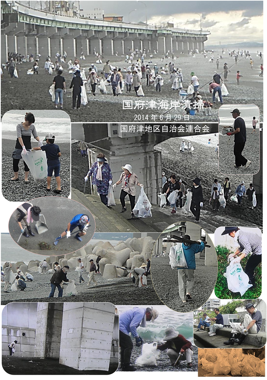 国府津海岸の清掃です。国府津地区自治会連合会が、毎年行っているものです。国府津駅構内のボードに掲示します。
