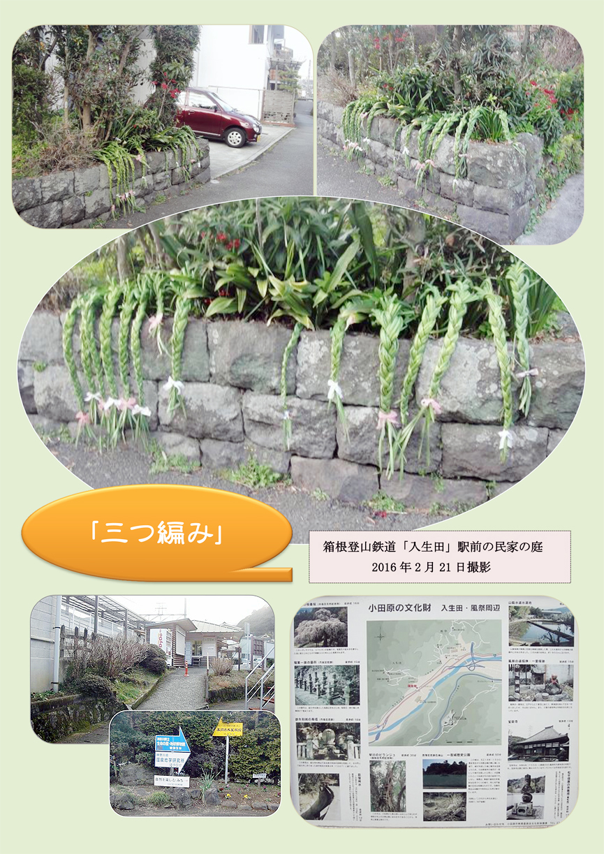 思わずカメラを向けました。2016年2月21日の日曜日。神奈川県立生命の星・地球博物館(小田原市入生田)からの帰り道、箱根登山鉄道「入生田駅」前の民家の庭です。 スジは分かっていても、その場面になるとクスッと笑ってしまう、そう、落語の話です。この「三つ編み」の風景。毎日の通勤通学で見慣れていても、そこに差し掛かり目にすると、やっぱり可笑(おか)しい----。いつもの「私の勝手なメール通信」の国府津番外の一景です。
