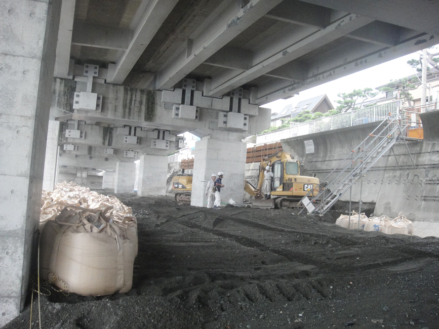国府津の海、国府津海岸の話です。台風19号一過の国府津の浜辺。砂浜(普段は石浜)は狭く、波が堤防近くまで押し寄せています。海岸通りの堤防は高くなり、海が見えません。散策する人も少なくなっています。そして、浜辺への降り口も少なくなりました。現在、その少なくなった階段・スロープをどこに設置するか検討中です----。