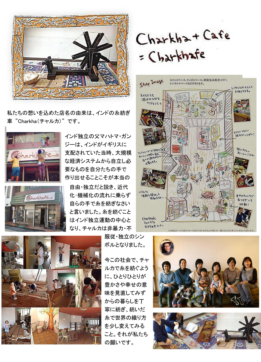国府津に今月下旬オープン予定のお店「チャルカフェ」が18日、仮オープンしました。土曜日とあって、スタッフの家族、仲間たちが集い、店内はいっぱい。特に、子どもたちが目立ちました。チャルカフェって?という質問には、添付の名前の由来を参照にして下さい。主婦も、子どもも、お年寄りも、もちろん若人も、気楽に立ち寄れるお店です。