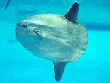 時折海面にからだを横たえた姿のマンボウが観察されることがあり、丸い体が浮かんでいる様が太陽のようであることからOcean Sunfish という英名がついたようです。このようにノンビリと海中を受動的に漂いながらクラゲや動物性プランクトンを食べる「ノ―天気な魚」だと思い込んでいたのですが、この度の“後学”の結果、胃の内容物から深海性のイカやエビなどの残骸も発見されていることから、イカやエビなどの餌を捕食するだけの遊泳力があり、更に、マンボウが海流に逆らって移動したり、勢いをつけて海面からジャンプしたりすることができると分かり、「マンボウもやればできるじゃないか」と思い直しています。