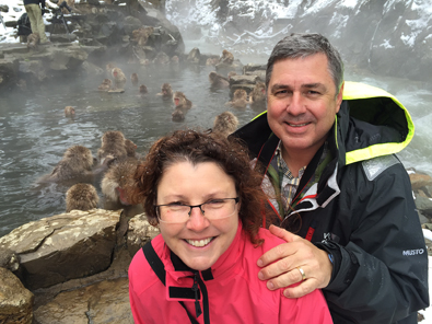 4月に入ってから二人は長野に旅行。すぐに行った先から右の写真を添付したメールを送ってきました。お猿さんたちが温泉入浴している光景で、「僕たちはこれが見たかったんだよ」と言いたげな嬉しそうな表情をしています。そしてメール本文には、「城と桜と猿と温泉と雪の取り合わせが最高。ヒロシさんも来年今頃長野に来ると見られるよ。」という親切な“観光ガイド”が付いていました。そっかー、日本人の「城と桜」を「城と桜と猿と温泉と雪」の5拍子に転調することができるんだ、見ようによっては!…初めての外国人との花見をしたことから新たなことを学んだ去年の体験でした。 |