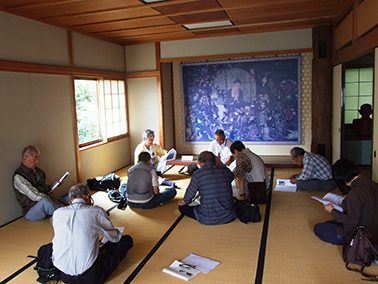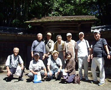 9月2日(土)、「駅前10時集合」よりかなり早く箱根板橋駅を降りてみますと、既に本イベントの仕掛人である遠藤紀忠兄(遠ちゃん:3組)と、脇松雄さん(小田原ガイド協会)のお二人が待機しておられました。そしてそこに、三木邦之(2組)、辻秀志(3組)、今道周雄・植田研二・太田充(4組)、中澤秀夫・山本哲照(7組)の諸兄がいずれも予定時刻以前に参集。これで11期生はベースボールメンバーの9名総揃い。これに、板橋の住人で、私(佐々木洋・3組)のラジオ体操仲間の妹分の朝倉洋子さんと脇さんが加わったのですからサッカーメンバー11名がフルメンバーになります。そこで簡単な挨拶を済ませた後すぐにキックオフ。‴知っていそうで知らない"板橋地区散策が始まりました。