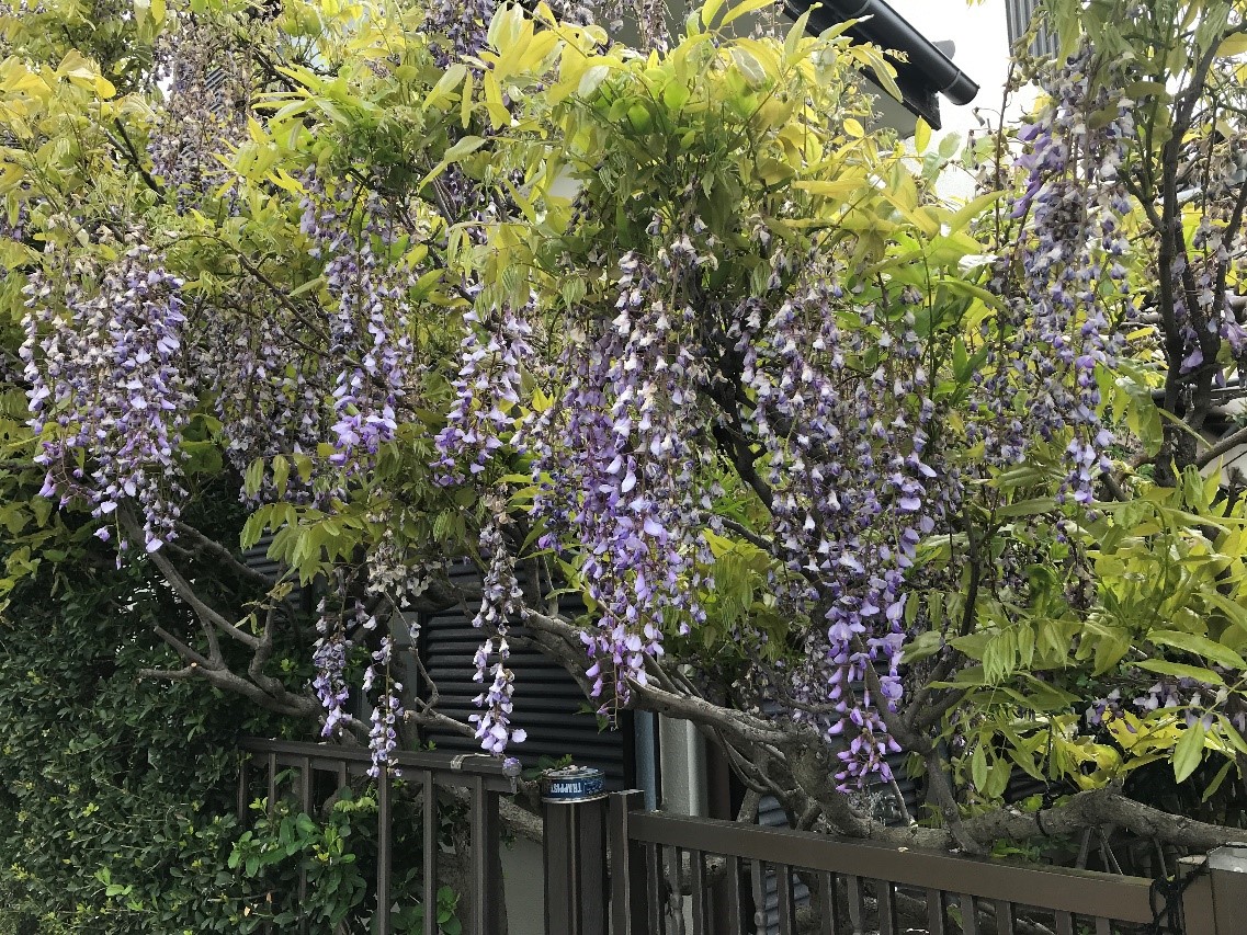幼少の頃から私にとっての藤の花は、今でも小田原市の名所の一つとされる「御感の藤」(ぎょかんのふじ)が全てでした。大正天皇が皇太子の頃、フジの花の下に召馬が駆け込み、肩に花が散りかかってしまった時に皇太子が「見事な花に心なきことよ」と感嘆されたことから「御感の藤」と名付けられたのだそうですが、私たちはひたすら「藤棚、藤棚」と称してフナやザリガニ釣りのために傍らの池にも親しく脚を運んでいました。小田原市の花だと思っていた藤の花が実は藤沢市の市花だと知ったのはつい最近のことでした。藤沢市内に設けられている「春の“フジ・ロード”」を辿って、我が“第二の故郷”の市花のスポットを辿って歩いて藤の花の美しさを堪能したのですが、同時に藤沢市の「藤沢」の名が記されているのは14世紀に発行された「太平記第十巻」になって初めてのことだということも分かりました。「藤沢」の地名も「藤の花が美しい沢」に由来しているに違いないと思いました。