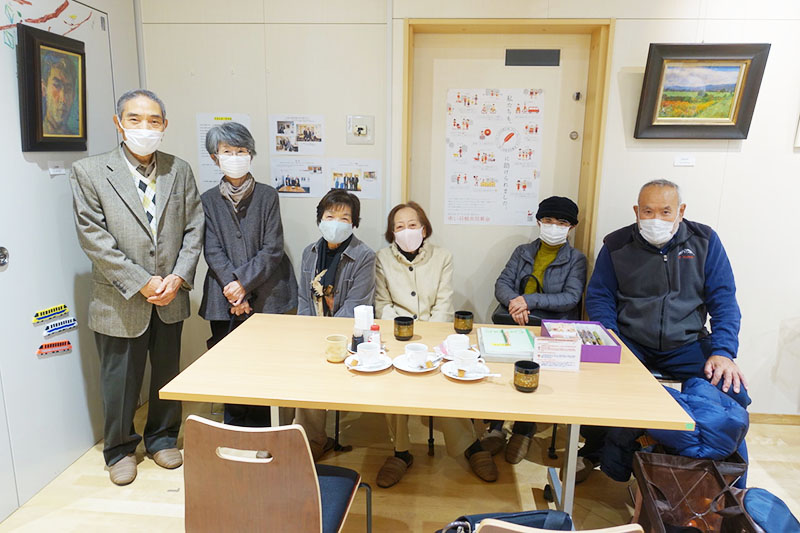 実は、この日、“茶のまある”において、半世紀ぶりに昔の職場の同僚と会うことになっていたのです。昨年“個”展を観賞された6組の故神保武司さんの奥様が声をかけてくださいまして、愛光電気(株)OGの福森さんと渡会さん(お二人とも追悼文を投稿されています)が、半世紀ぶりに市川さんにお会いしたいということで実現したものです。