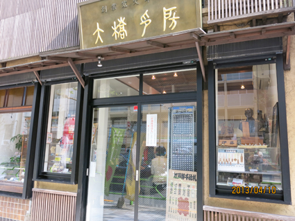 前回の東京オリンピックの際、記念風呂敷を受注しており、店内は美術館に居る感覚になってくる。 唐草屋を出て左側の一つ目の路地を左折して大通り(金座通り)に出て信号を渡って左折し、人形町駅方向に20~30mに(人形町駅A6出口より1分)大橋印房がある。