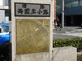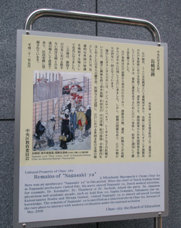 そこから江戸通りとの交差点のJR東日本橋駅の入り口の壁に、見過ごしそうであるが「長崎屋跡」(4)の史跡名盤がはめ込まれており、江戸時代の薬屋の長崎屋を、オランダの商館長が一国貿易のお礼に年一度の献上品を携え、江戸出府の際の定宿として使ったが、シーボルトなどの医学者も同行してきており、日本人の平賀源内などの蘭学者や医学者が知識吸収の為に訪問し、西洋文明の交流の場として貴重な存在であった。