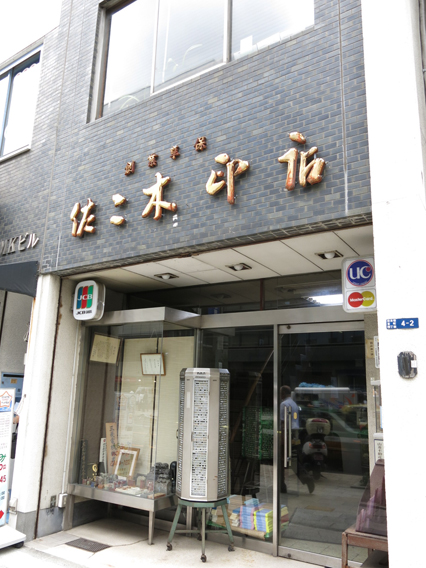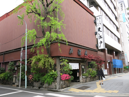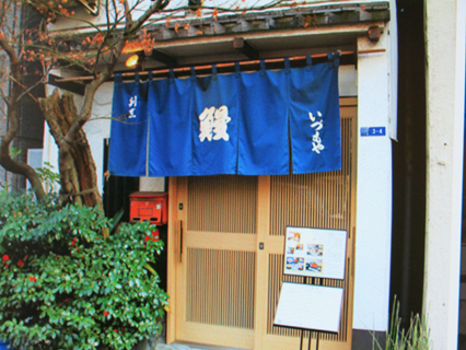 伊勢国三重郡から高津伊之助は元禄4年(1691)に江戸に出てきて雑穀屋に年季奉公し、元禄12年(1699)に独立し、四日市河岸(現・日本橋1丁目9番地)土手蔵前に戸板2~3枚を並べて鰹節や塩干の販売を初め、宝永2年(1705)に屋号を伊勢屋とし名前も伊之助から伊兵衛と改名し、商標は伊勢屋と伊兵衛のにんべん「イ」と商売を堅実にする鈎型の「┐」と合わせて「カネにんべん」としたが、江戸の町民は伊勢屋のことをだれ言うとなく「にんべん」と呼ぶようになったとのことです。