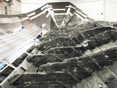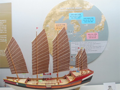百済の時代には聖王(Seong)が仏教布教のための使節を送ったそうだが、この港から使節は出発したのではなかろうか。木浦には国立海洋文化財研究所がある。1975年に全羅南道(Jeollanam-do)新安郡の會島沖で700年前の沈没船(新安沈船)が発見され、船体と積み荷を引き上げた結果水中考古学と海上貿易史の大成果となった。研究所にはこれらの品が陳列されている。陳列されている船はいくつかあるが新安船が最も大型で、しかも日本と元の間の交易に使っていた船であることが興味深かった。 |