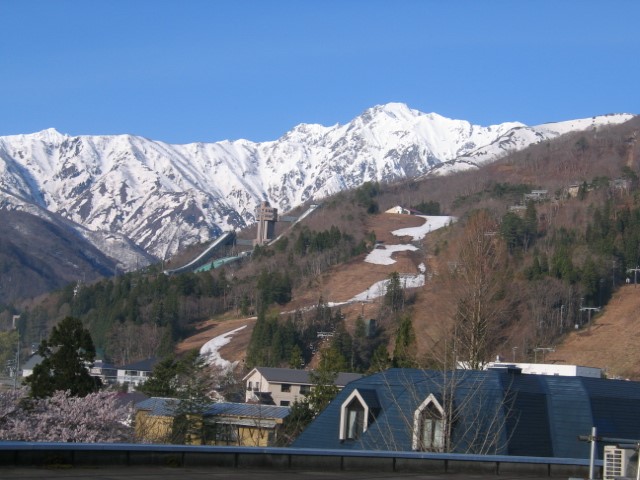 窓いっぱい、白馬三山・・・