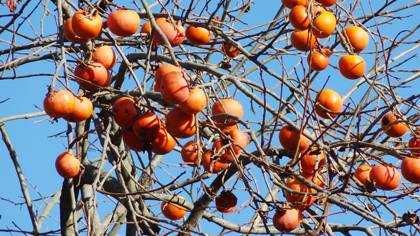 仕事の関係で時々上郡大井町の相和や山北町の川西へ行くことがあります。それらは市街地から暫し離れた山腹の山里で、秋になるとその辺の山道沿いに橙色の撓わな実を着けたいろいろな柿の木が山肌を背に「ほら、綺麗だろう」と誇らしげに語りかけて来ます。