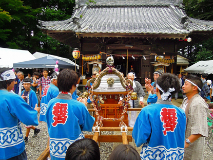 神主がいないので大晦日、正月、七五三、地鎮祭、そして秋の例大祭には親類神社から神主が出張して来る 。